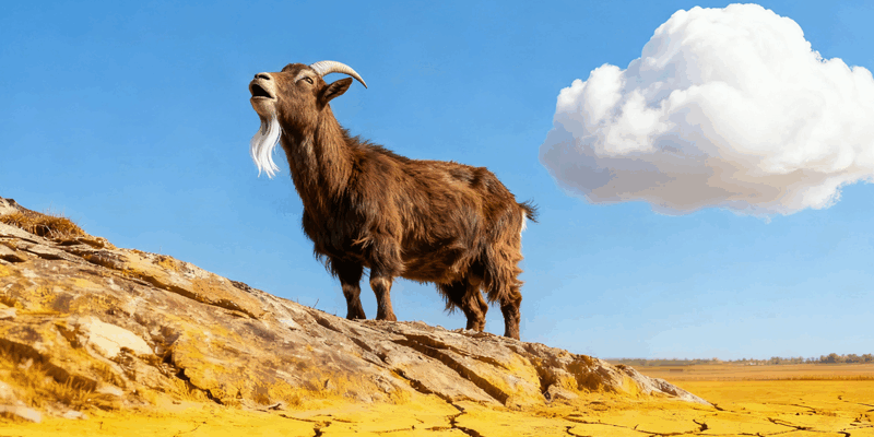 高坡上住着一只老山羊,终日踏着岩石找草吃。山下的田野常年干渴,云朵在天边游走,却不肯久留,山羊常望着天叹息:“若云愿落雨,山下便可复绿。”